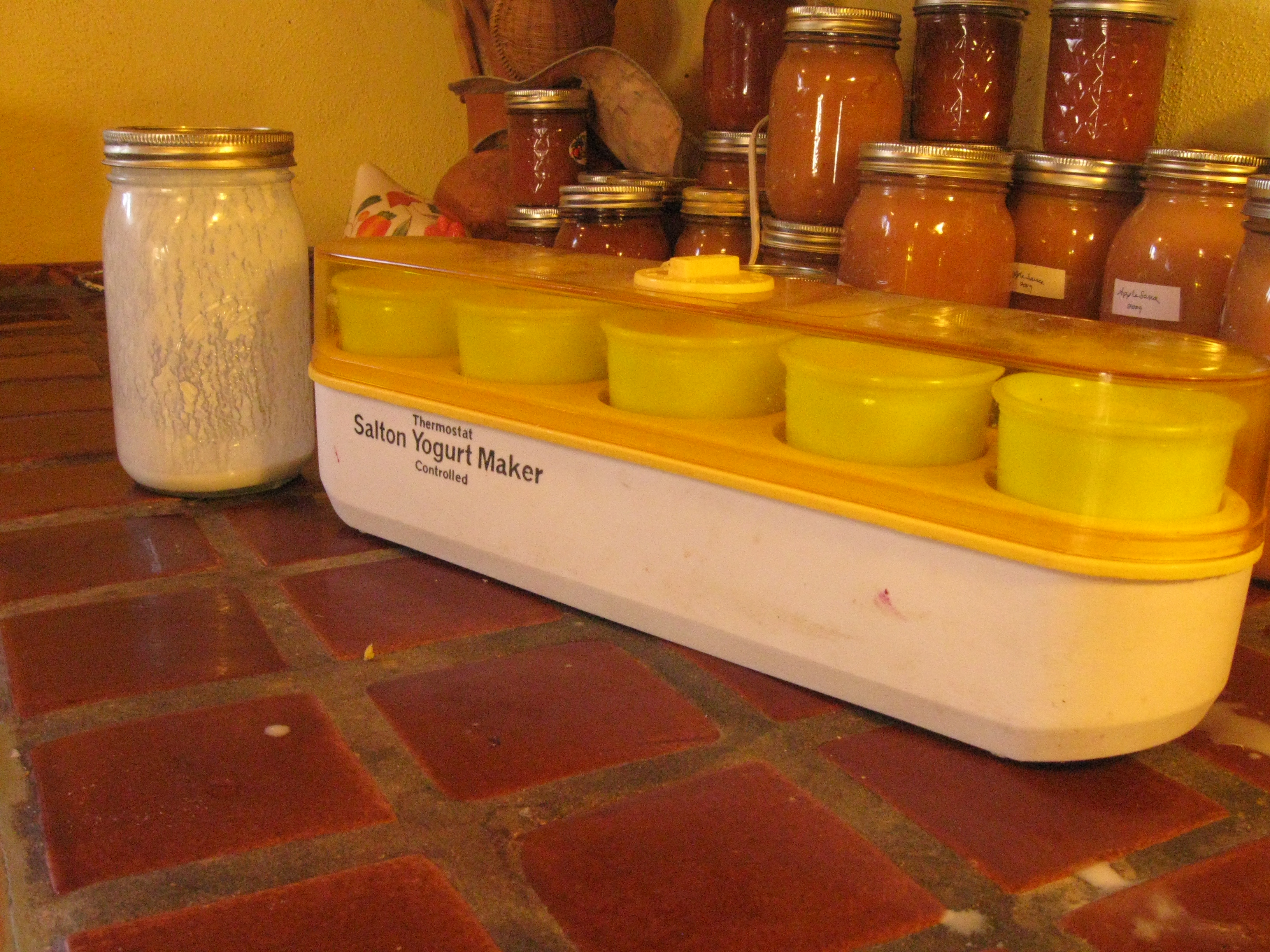 Note from the humble yogurt making disciple: I used to think making yo-yo was as easy as cooking a pot of rice. Then came the time I now call The Month of the Funky Yo-yo. With each new batch I tried to reclaim my groove, tinkering with the starter, the incubators, adding rennet, and on an on. For my efforts I’d get something acceptable for adding to pancake batter. And I’m not picky! This week it just…worked. We are enjoying the loveliest, creamiest, thickest and sweetest goat milk yogurt imaginable. I am delighted to say that I have no idea why it worked this week and not the others (unless it had to do with my forgetting all about it and leaving it to incubate 11 hours instead of 8). It is alchemy and magic and my only advice is this: persist, don’t insist.