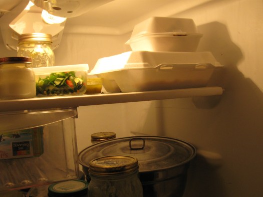 I felt sick bringing home all this styrofoam with leftovers from a rare dinner out. Ever practical and searching for meaning, I looked for the lesson in the disaster. Apparently this week’s take home message is something along the lines of Always Be Prepared. Or maybe it’s to get out of the house more often.