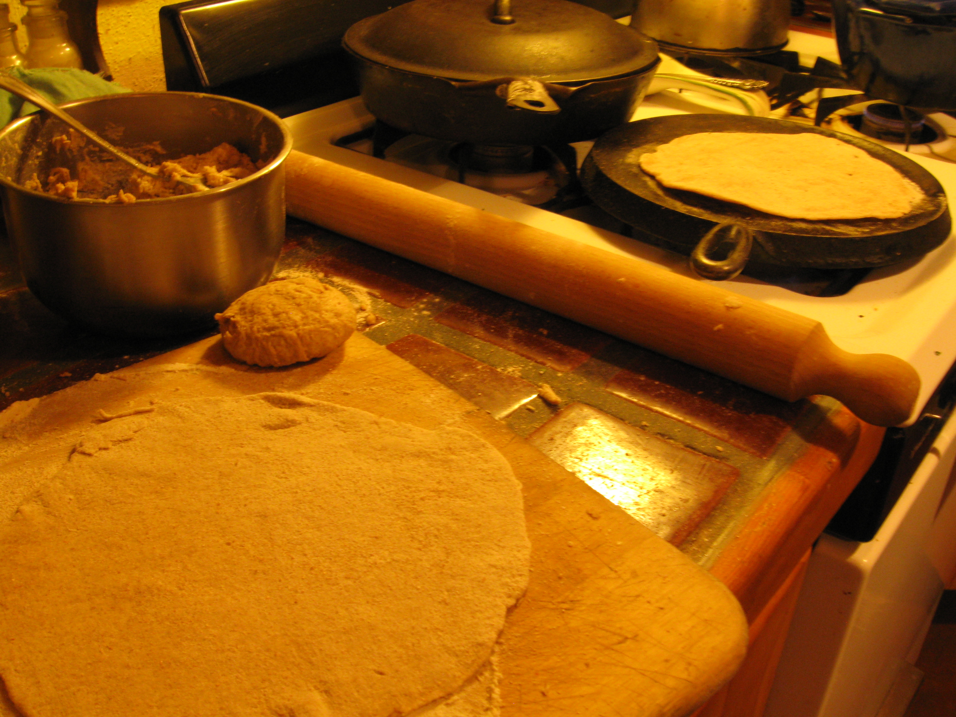 I’ve been making tortillas/chapatis pretty regularly these days. More than anything else I cook, this recipe seems to fill my kitchen with helpful, if opinionated, spirits.