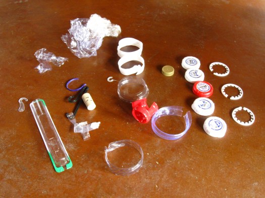 Five milk caps, and slightly fewer rings from the milk jugs. Apparently I’m not as diligent as I thought I was about saving trash. It doesn’t come very automatically after a lifetime of tossing it.