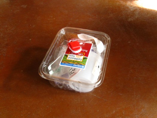 And now for the moment you’ve been waiting for. What was it that Kyce couldn’t resist? What was so irresistible and necessary that even this woman with convictions of steel (!) couldn’t say no to it? Was it the cheese crackers for her little girl? The pint of blueberries? Nooo. It was a puny bottle of citric acid. Totally premeditated and I remain unrepentant. With it we made goat milk mozzarella. What can I say? I was craving pizza. And that little bottle will make an awful lot of cheese. Look for it in our trash pile come October.
