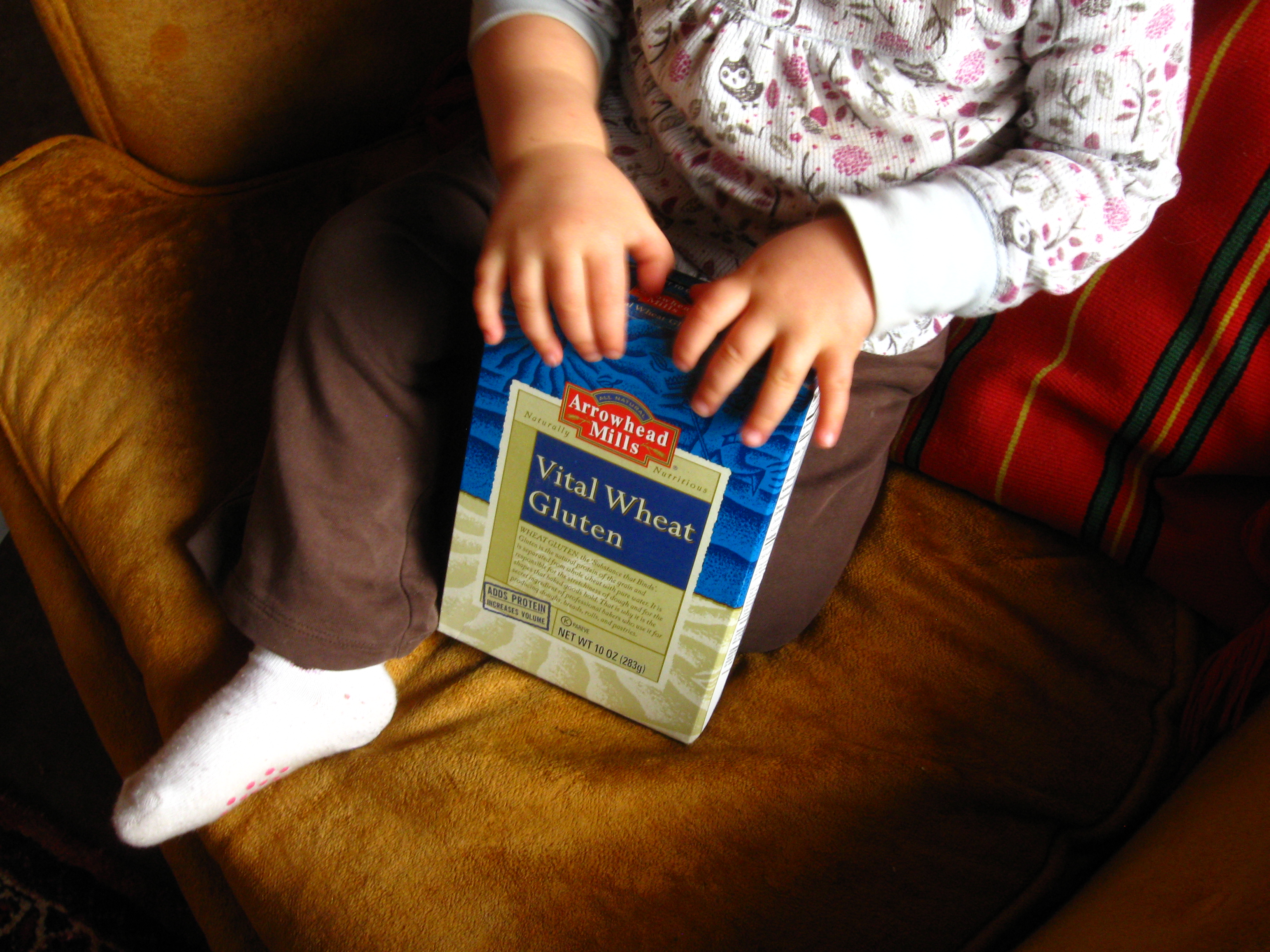 The day came when I really wanted vital wheat gluten. I assure you it seemed absolutely necessary. At one store it was sold in plastic bags. So of course I didn’t buy it. At the next store I saw it in a cardboard box. Jackpot!