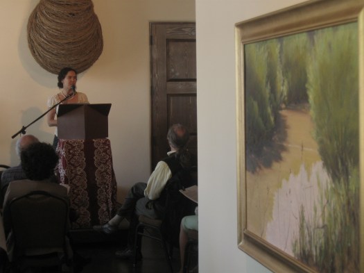 Here I am giving my little speech at the beginning. The reading was in a gallery currently showing an exhibit about the Santa Fe River. Fitting, right? Basically what I said in my talk was this: “Our stories, poetry, songs, and art are a crucial part of breathing life back into the river. I believe this kind of praise and honoring feed it in a vital way, and that they are possibly as essential as water. For a river can flow with water and still be invisible and neglected if it doesn’t live inside us…By re-storying the river we bring it back to life in our hearts and minds, smoothing the way for its physical restoration.”