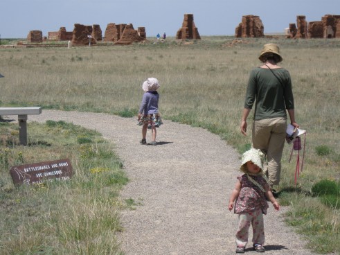I did make bonnets earlier this summer, but they have been usurped for the time being by the pair we bought at the state park with those ruins in the top picture.