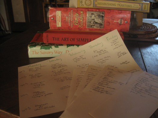 I meal plan once a week, and archive those plans, just in case next time the week of March 24th rolls around I want to just repeat the genius. I often tell folks that meal planning is my secret to eating well on a little. I flatter myself that I am a little famous amongst my flock for being the most frugal shopper. Meal planning is one secret. The other is not buying much food. My husband likes to ask once the groceries are unloaded, “Did you get anything to eat?”