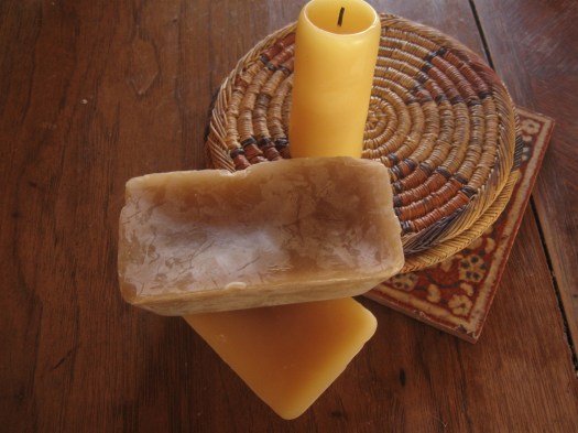 In our town beeswax is found at the farmer’s market, herb store, and candle shop.