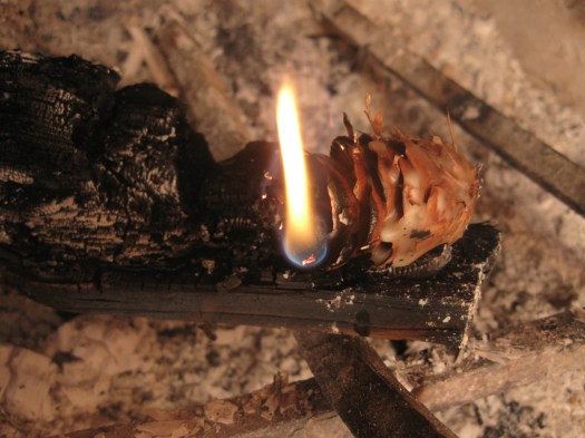 So don’t go to that bend in the road, go to that dip where the Ponderosa’s grow, and get the old dried out cones from last year, not the freshies from this one. And then drench the suckers in beeswax like you mean it.