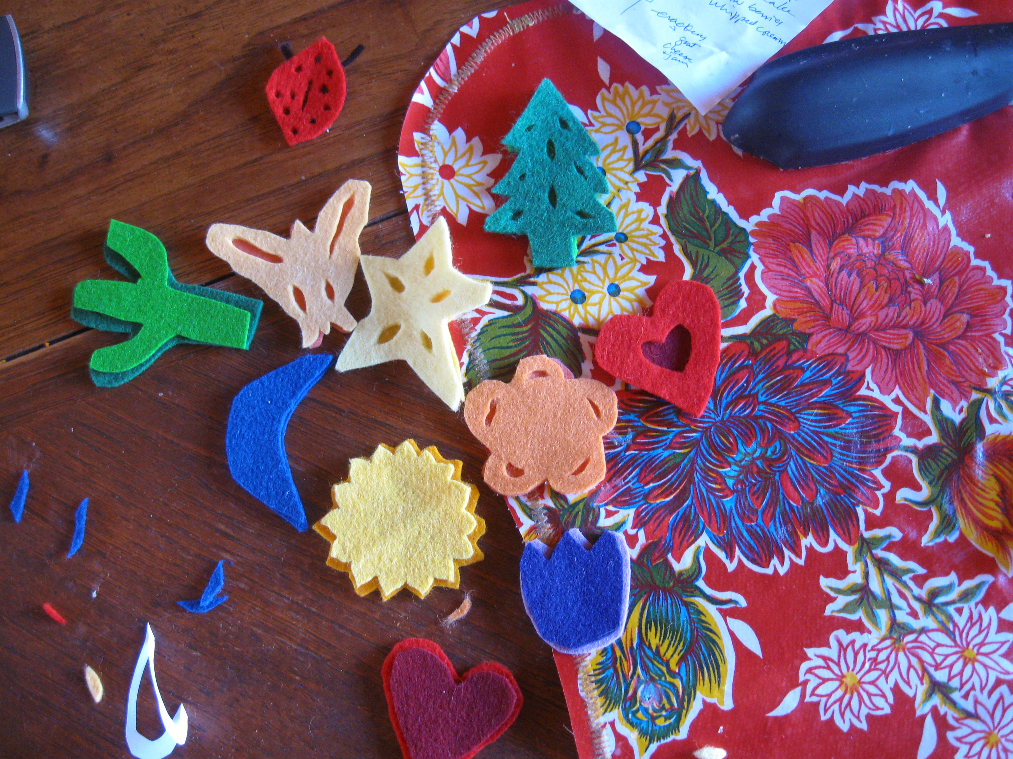 First, I should say that I did consider buying the decorations, which are wooden and quite charming and no doubt worth the investment. But while bargain hunting (and getting heart burn from the thought of *gasp* buying something ready made) I came upon this tutorial on making your own. I have been in a stash busting mood when it comes to my wool felt collection, and so this was a win-win.