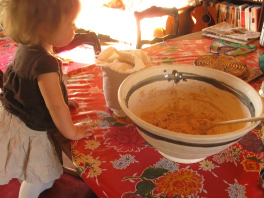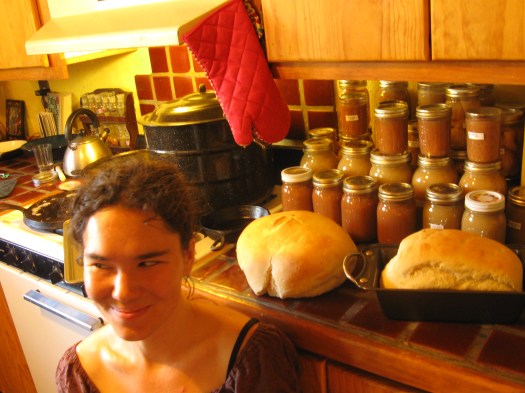 The truth is, this is my second go at learning these lost kitchen arts. Long ago, before I succumbed to the mainstream, I was a righteous country girl. I made my share of bread, and had chickens. I learned to can “open-kettle” style (which, if that sounds quaint, is the kind of preserving that causes botulism), and wildcrafted herbs up and down the Rio Grande. My greatest ambition in life was to, well, do what I’m doing now – be a mama who writes occasional poems and whips out two loaves of fresh bread while singing “The Bramble and the Rose.”