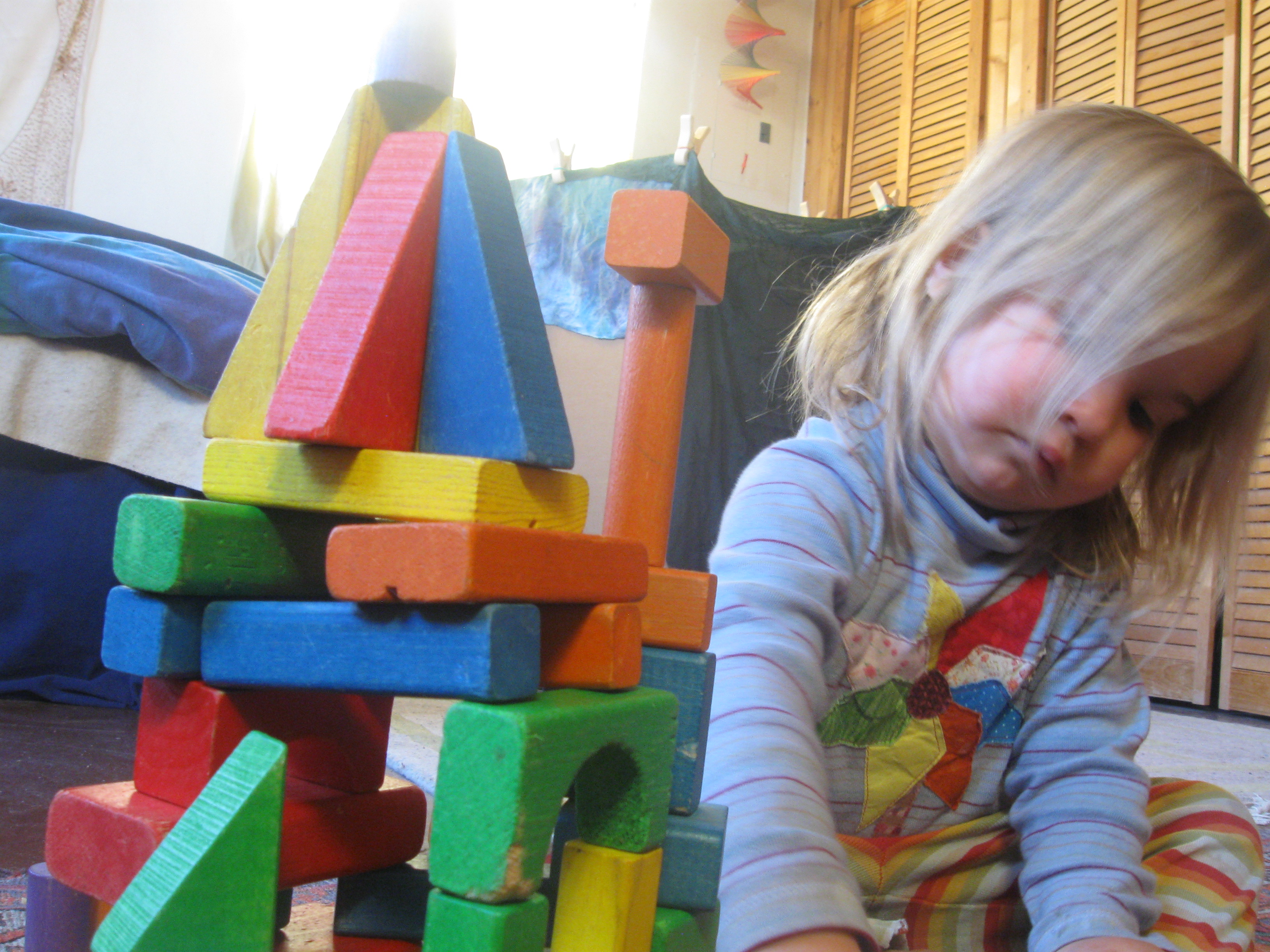 A friend of mine shared this story: She read in a book by a Waldorf early years teacher that whenever the children starting getting too wild or disruptive, the teacher slowly and methodically went about putting the room back together. Folding silks, placing dolls in their cradle, stacking bowls in the kitchen. And the children magically settled, finding their center once again. My friend said that when she read this, she realized that it perfectly described her own state of being–when the house is a mess, she feels impatient and irritable. When it has come back together again, she feels peaceful and easy. I couldn’t agree more!