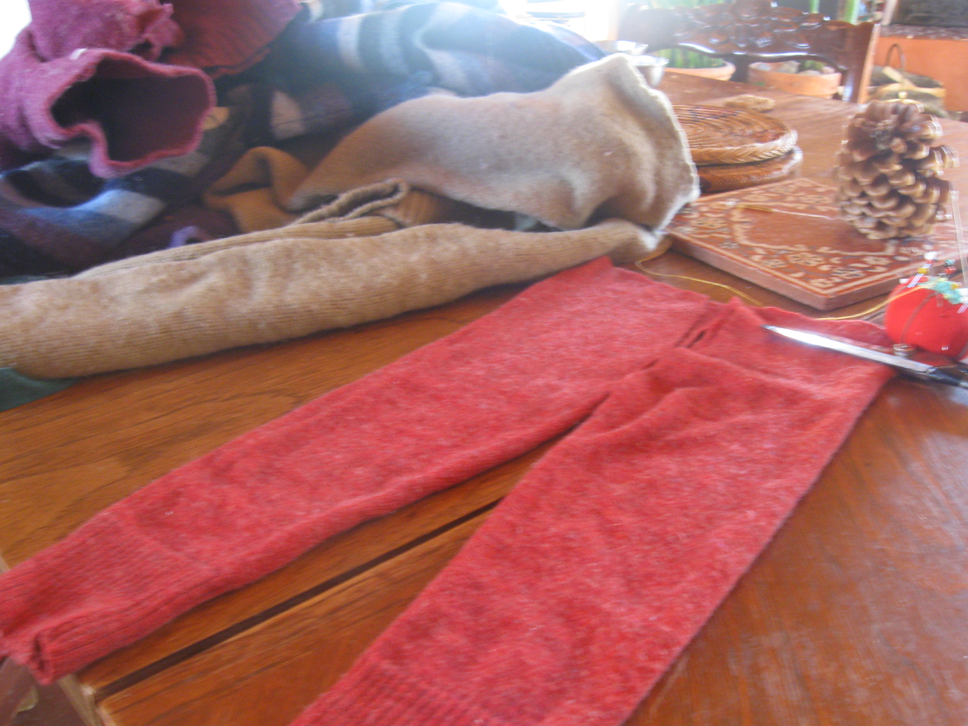 Done cutting up sweaters to make longies so you are toasty-warm here on the Outside.